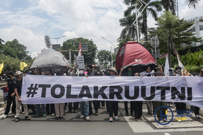Aksi unjuk rasa menolak pengesahan revisi RUU TNI digelar di depan Gedung DPR RI hari ini, Kamis (20/3/2025). Aksi demo merupakan bentuk kekecewaan setelah protes masyarakat terkait RUU TNI didengarkan.