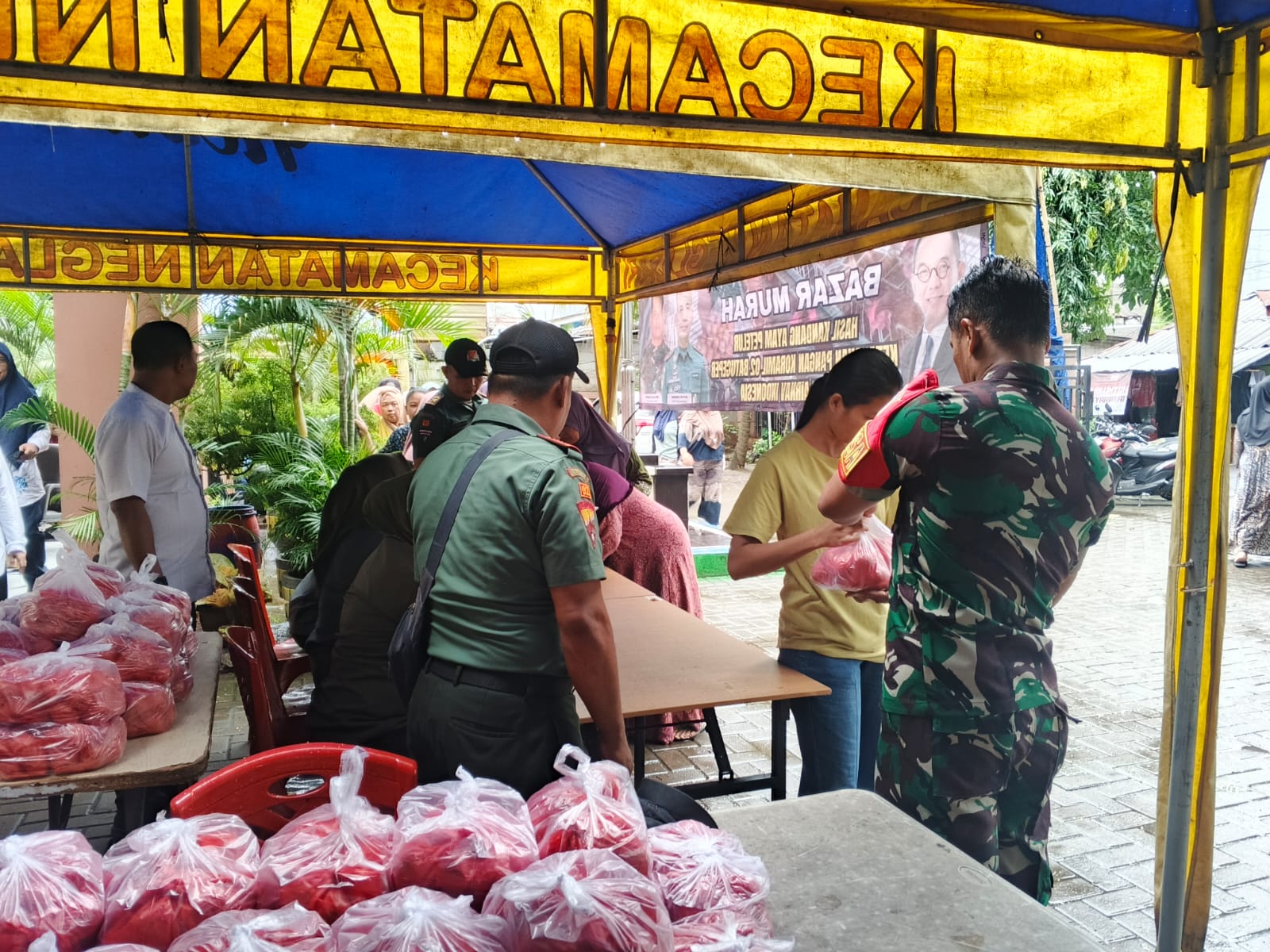 Kegiatan yang dipelopori Sertu Agus Puji Winarto bersama mitra Koramil 02/Batuceper ini berlangsung pada Jumat (6/3/2026) dan mendapat sambutan antusias dari masyarakat sekitar. Dalam bazar tersebut, panitia menyediakan 200 paket telur ayam, dengan masing-masing paket berisi 2 kilogram telur yang dijual dengan harga Rp50.000 per paket, jauh lebih murah dibandingkan harga pasar saat ini.