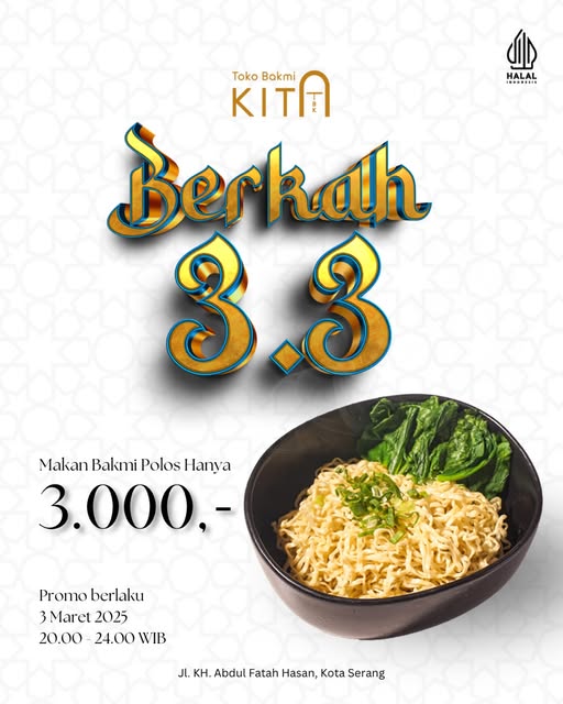 Setelah sebelumnya buka di Jalan Sokhari Sumur Pecung Kota Serang, Toko Bakmi Kita (TBK) Pindah ke Jalan KH. Abdul fatah hasan Cijawa Kota Serang atau sebelah kantor Taspen Kota Serang. Kini dengan tampilan yang lebih eyecatching guys.
