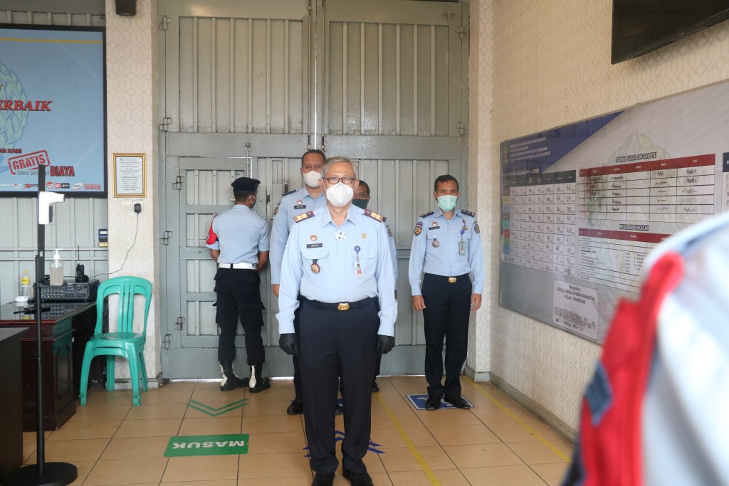 Kepala Kantor Wilayah Kementerian Hukum dan HAM Banten, Agus Toyib juga memantau sekaligus memberikan arahan terkait pelaksanaan penanganan covid-19 baik kepada pegawai maupun Warga Binaan Pemasyarakatan (WBP).