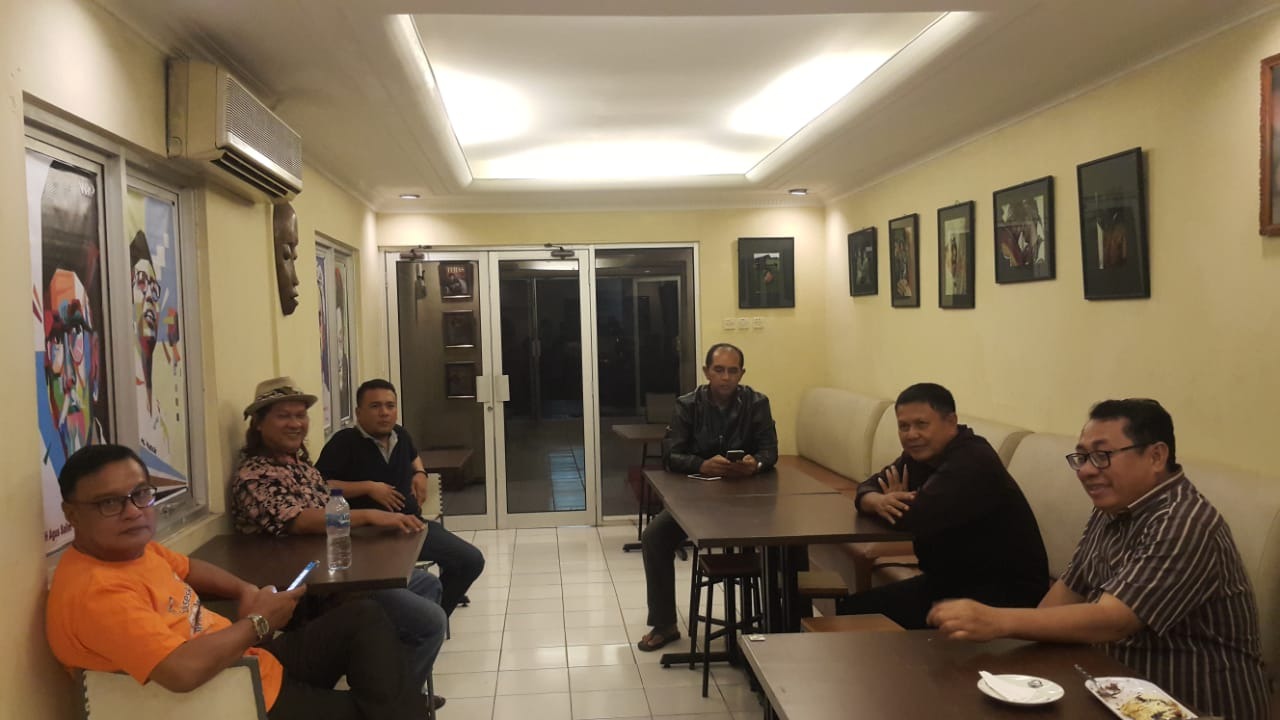 PUSARAN.CO – Politisi Partai Berkarya Fauzi Salam, Budayawan Golagong, Kasubid Penmas Polda Banten Kompol Priyatri Winoto dan Paur Mitra Subid Penam Ipti Yudiana mengunjungi Teras Coffee dan disambut hangat oleh CEO Teras Coffee Firdaus. Selasa, (10/12/2019).