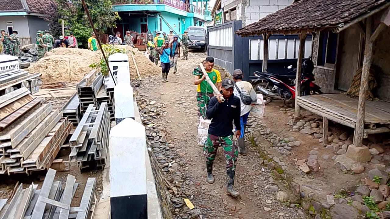 Gotong Royong, Satgas TMMD Ke – 123 Kodim 0603/Lebak Bahu Membahu Dengan Masyarakat Dalam Membangun Jembatan