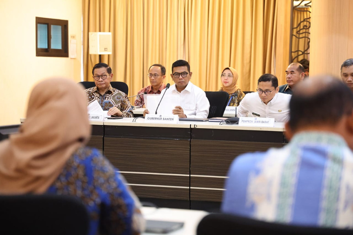 Gubernur Banten, Andra Soni menghadiri Rapat Koordinasi Penanganan dan Pengurangan Risiko Banjir Jangka Pendek dan Jangka Menengah di Kantor Kementerian Koordinator Bidang Pembangunan Manusia dan Kebudayaan (Kemenko PMK) di Jl Merdeka Barat No. 5 Jakarta, Kamis (27/3/205).