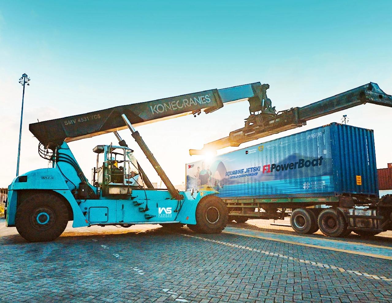 Sebanyak 11 kontainer dengan berat total 83.488 kg telah diberangkatkan dari pelabuhan belawan, sumatera utara menuju venue di Balige. Logistik tersebut diberangkatkan melalui jalur darat menggunakan truck trailer yang selanjutnya dilakukan proses unloading container dan customs inspection di Balige yang merupakan lokasi untuk pelaksanaan Aquabike World Championship 2025.