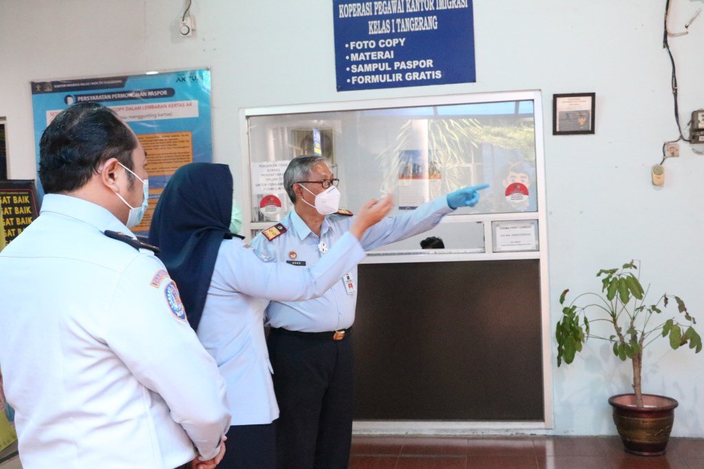PUSARAN.CO – Masih dalam rangka kunjungan perdananya sebagai Kepala Kantor Wilayah Kementerian Hukum dan HAM Banten, usai mengunjungi Lapas Kelas I Tangerang, Kepala Kantor Wilayah, Agus Toyib juga berkesempatan mengunjungi Kantor Imigrasi Kelas I Non TPI Tangerang.
