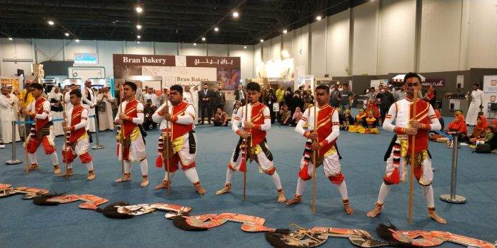 PUSARAN.CO– Sejumlah personil kesenian nusantara meriahkan acara pembukaan World Franchise Exhibition (WFE) 2019 yang diselenggarakan di Dhahran International Exhibition Center, Khobar, Saudi Arabia, Kamis, (25/04).