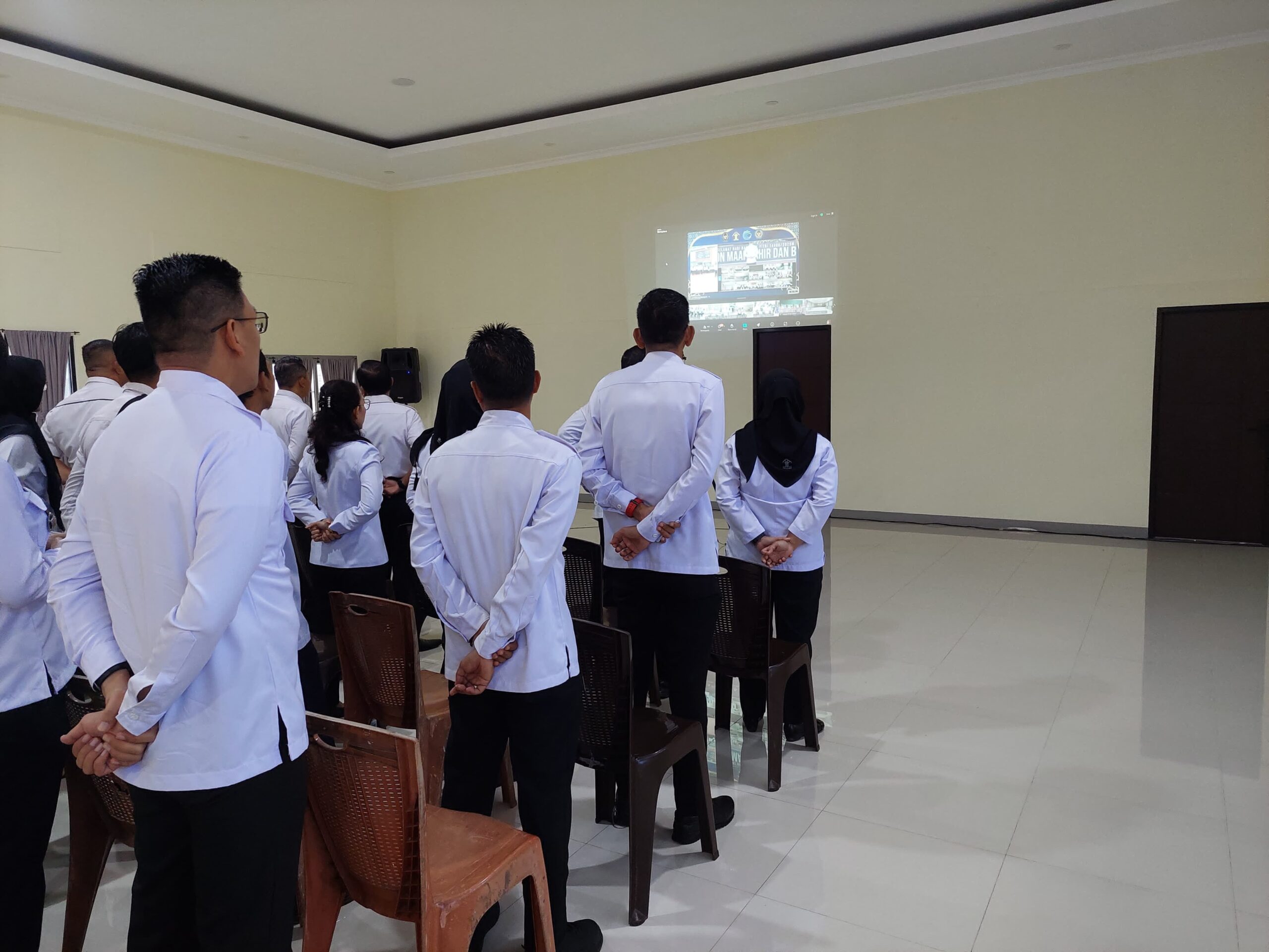 Kegiatan tersebut diikuti dalam rangka Menindaklanjuti Surat Kepala Kantor Wilayah Ditjen Pemasyarakatan Sumsel Nomor WP.6-UM.01.01- 0212 tentang Apel Pegawai dan Halal Bi Halal 1446 H / 2025 M Keluarga Besar Kementerian Koordinator Bidang Hukum, HAM, Imigrasi dan Pemasyarakatan, Kementerian Hukum, Kementerian HAM dan Kementerian Imigrasi dan Pemasyarakatan secara virtual.