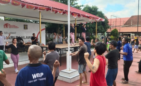 Dengan mengikuti irama musik yang menggembirakan, seluruh warga binaan Lapas Kelas I Palembang bergerak mengikuti instruksi dari instruktur senam yang bertindak sebagai pemimpin senam dan diikuti oleh seluruh petugas lapas kelas I Palembang.