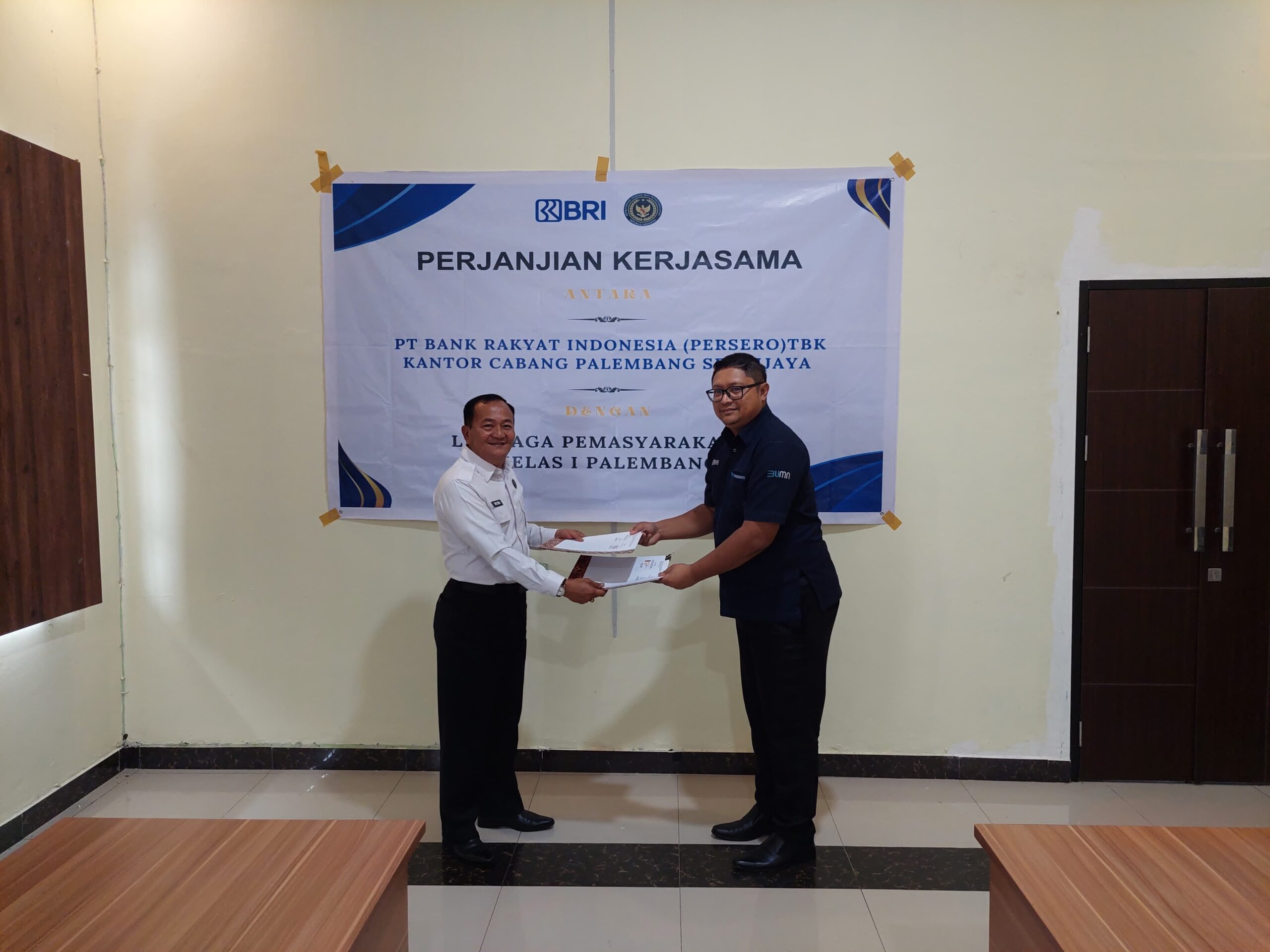 Acara ini dihadiri oleh Kalapas Kelas I Palembang dan Pimpinan Cabang BRI Kantor Cabang Sriwijaya Palembang.