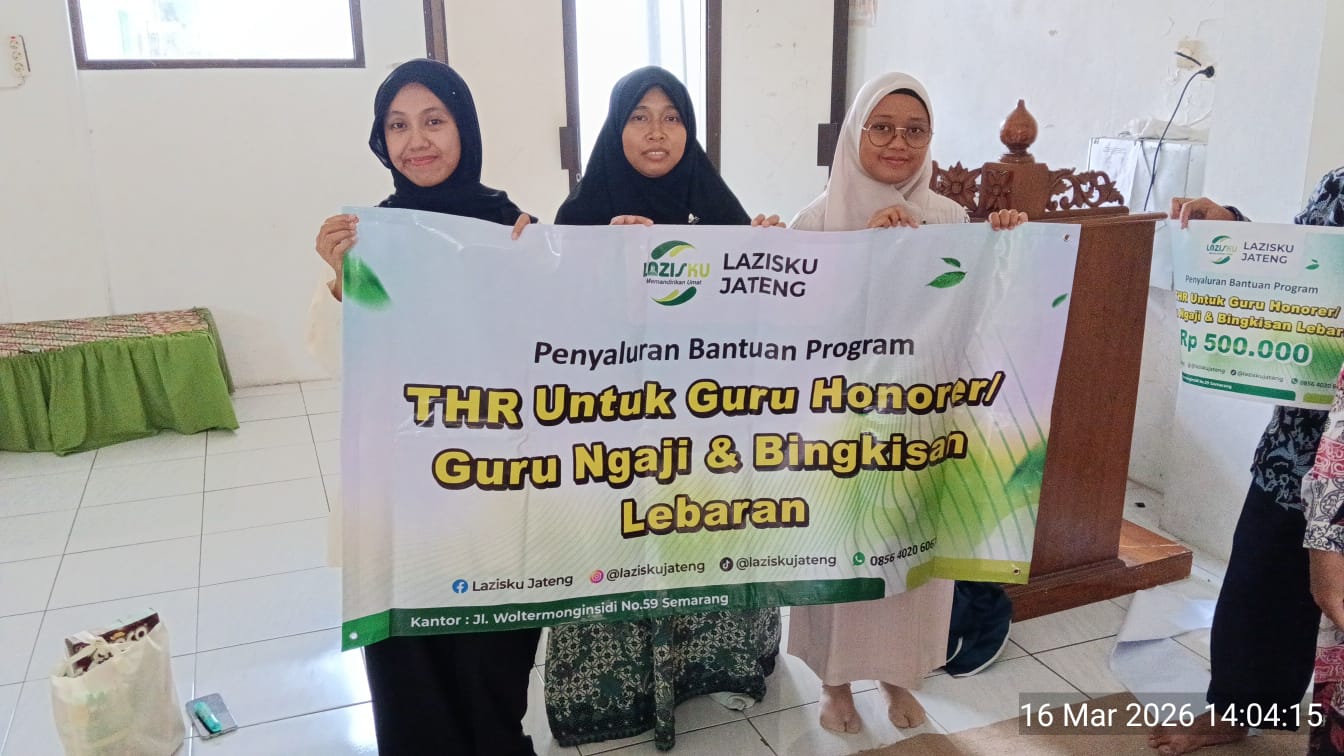 Semarang — Dalam rangka menyambut Hari Raya Idul Fitri 1447 H, LAZISKU Pusat bekerja sama dengan LAZISKU Jawa Tengah menyalurkan bantuan Tunjangan Hari Raya (THR) dan bingkisan lebaran kepada para pendidik, Senin (16/3/2026).