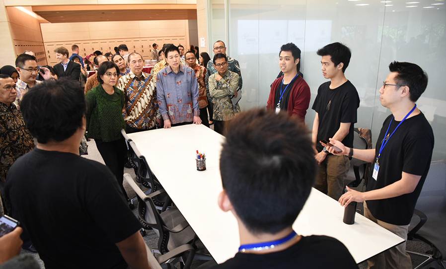PUSARAN.CO – Menteri Keuangan (Menkeu) Sri Mulyani Indrawati, memberikan sambutan pada acara kelulusan siswa angkatan pertama Apple Developer Academy, Menteri Keuangan (Menkeu) Sri Mulyani Indrawati didampingi oleh Direktur Apple Developer Academy Internasional, Gordon Shukwit, berkeliling melihat tempat para siswa mengembangkan ide-idenya.