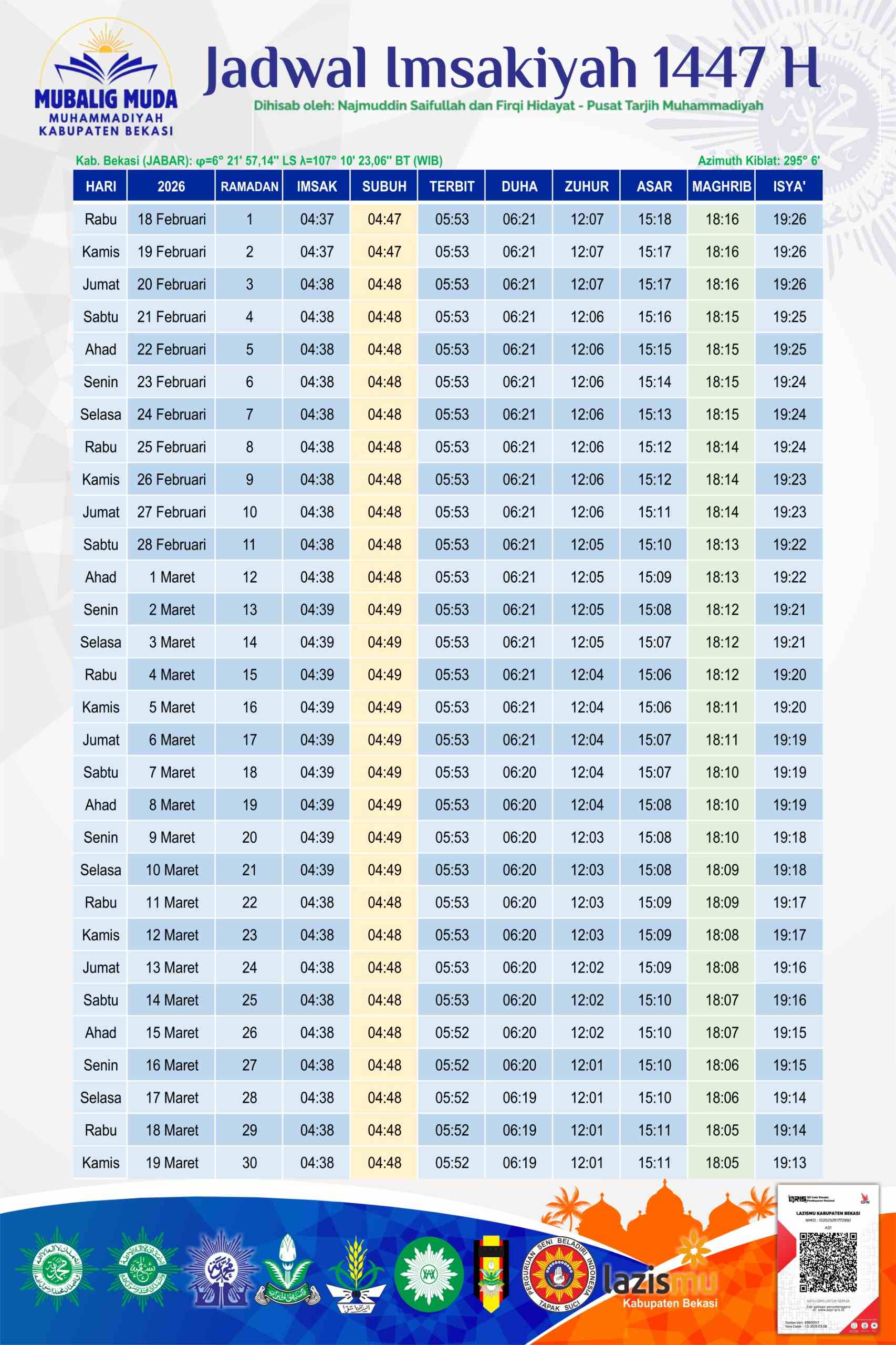 “Berdasarkan maklumat PP Muhammadiyah Nomer 2/MLM/I.0/E/2025 tentang Penetapan Hasil Hisab Ramadan, Insya Allah warga Muhamadiyah kabupaten Bekasi akan melaksanakan sholat tarawih malam ini” ungkapnya.