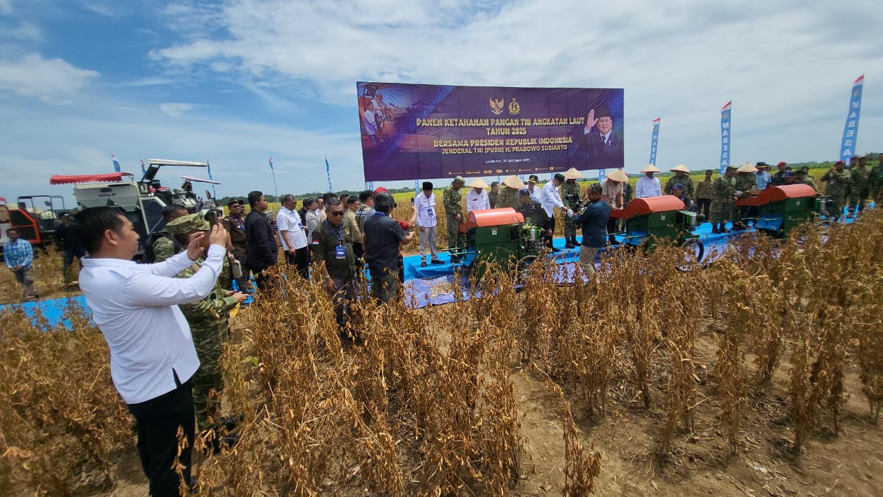 Panen Raya Kedelai STII Presiden RI bersama Menteri Pertahanan berlangsung di Lampung