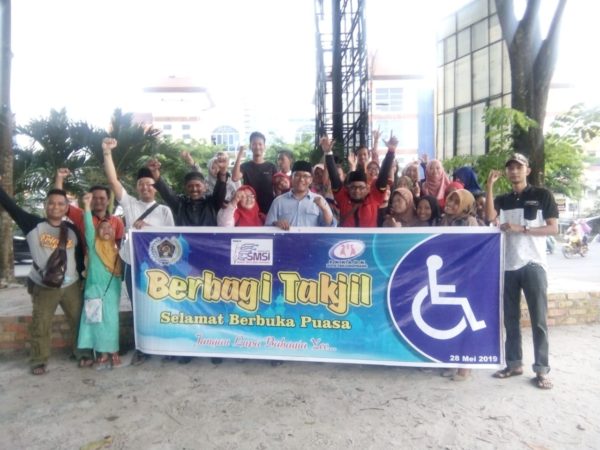 PUSARAN.CO – Meski menjalani hidup anggota tubuh yang tidak normal, namun tidak mengurangi semangat para penyandang cacat (disabilitas) di Tanjungpinang, untuk tetap bersyukur kepada Yang Maha Kuasa. Puluhan penyandang disabilitas di Tanjungpinang yang tergabung dalam Forum Komunikasi Keluarga dengan Kecacatan (FKKDK) Tanjungpinang menggelar bagi-bagi takjil bersama di lampu merah Bintancenter Batu 9, Selasa (28/5).