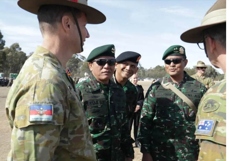 Hadir mendampingi Pangkostrad, Pangdivif 1 Kostrad Mayjen TNI Agus Rohman, Paban Binlat Sopsad Kolonel Inf Bangun Nawoko, Atase Darat Indonesia untuk Australia Kolonel Inf Herbert Tambunan dan Kaspri Pangkostrad Mayor Inf Reynaldi. (sumber : tniad.mil.id).