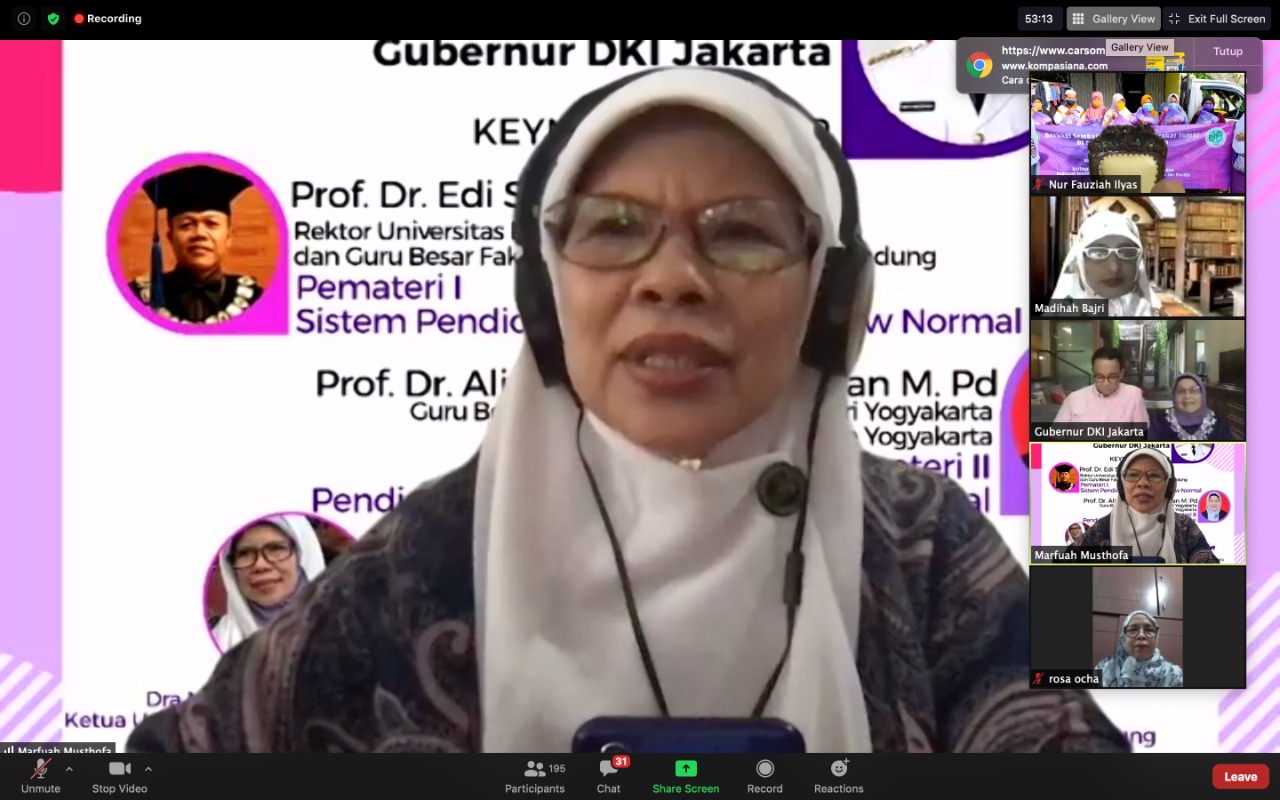 “Seminar ini membahas bagaimana model pembelajaran yang tepat untuk dilakukan pada saat new normal ini, apakah sudah tepat model pembelajaran yang diterapkan selama ini,” terang Marfuah.