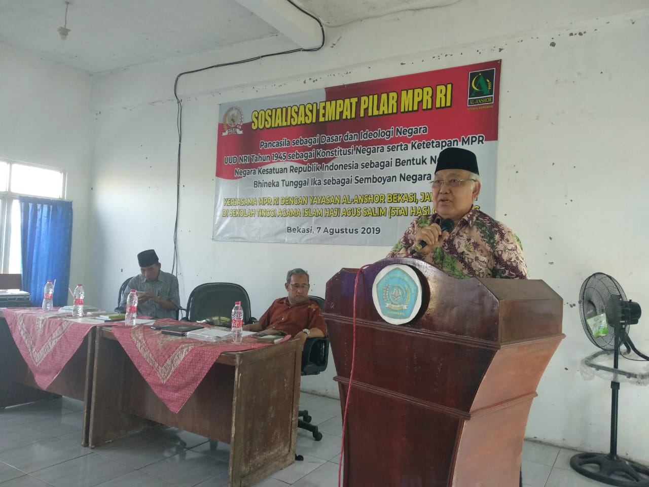 PUSARAN.CO – STAI Haji Agus Salim dan yayasan Al Anshor melaksanakan Sosialisasi empat pilar, Rabu (7/8/2019), bertempat di kampus STAI Agus Salim, Cikarang Bekasi.