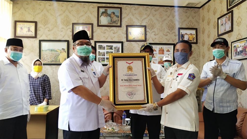 GERBANGPATRIOT.COM – Lampung, Politisi Senior Partai Golkar Provinsi Lampung, H. Tony Eka Candra (TEC) menerima penghargaan sebagai “TOKOH POLITIK SUKSES PEDULI SOSIAL” dalam ajang penganugrahan “HUT DUTA LAMPUNG Ke-7”. Penghargaan diberikan langsung oleh Direktur Perusahaan PT. Duta Lampung Media M.Nurullah beserta jajaran dikantor DPD Partai GOLKAR Provinsi Lampung, Senin, (20/4/2020).