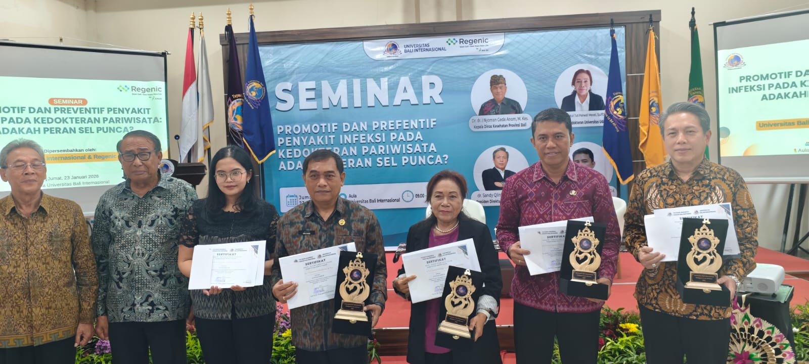 Denpasar — Universitas Bali Internasional (UNBI) di bawah naungan Yayasan Anugerah Husada Bali Indonesia, bekerja sama dengan RSUD Bali Mandara dan Regenic Stem Cell – PT Kalbe Farma, menyelenggarakan seminar ilmiah bertajuk “Promotif dan Preventif Penyakit Infeksi pada Kedokteran Pariwisata: Adakah Peran Sel Punca?”.
