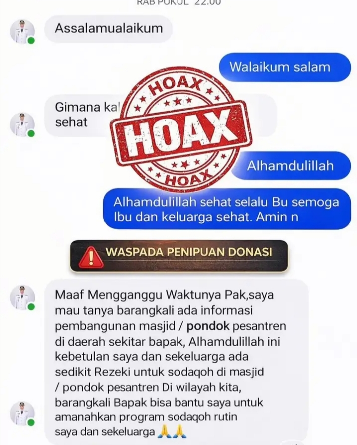Pelaku biasanya memulai komunikasi melalui pesan pribadi dengan gaya bahasa sopan dan bernuansa religius. Percakapan diawali dari sekadar menanyakan kabar, lalu melanjutkan pada ajakan mengikuti program sedekah atau donasi, seperti pembangunan masjid dan pondok pesantren.