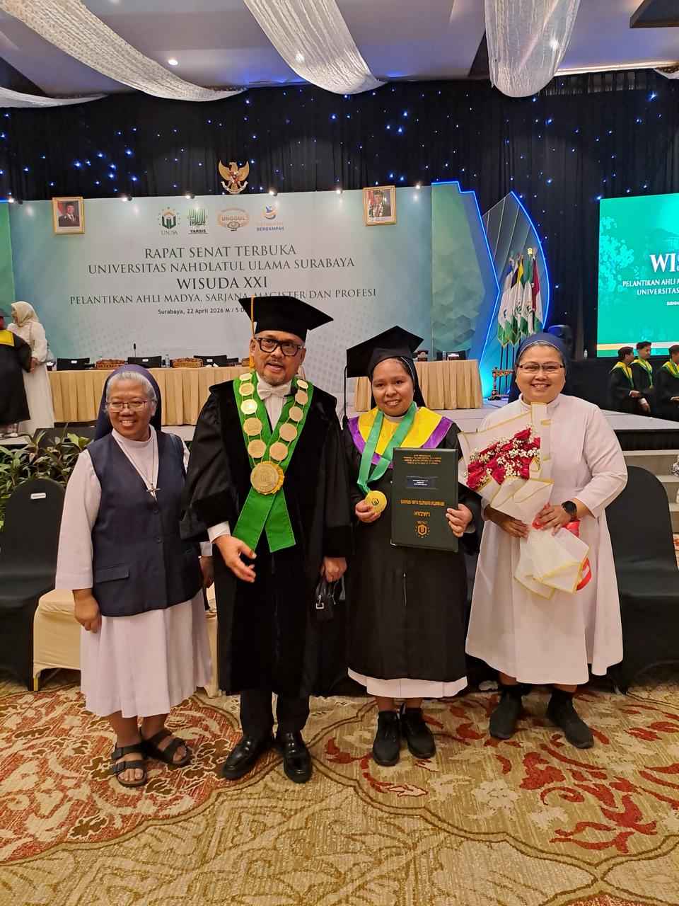 Surabaya – Universitas Nahdlatul Ulama Surabaya kembali menegaskan komitmennya sebagai kampus inklusif dan menjunjung tinggi toleransi antarumat beragama. Hal itu tercermin dari pengalaman seorang wisudawati Katolik yang menempuh pendidikan di lingkungan kampus mayoritas Muslim.