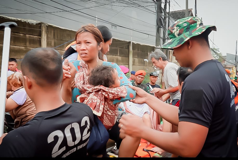 “Kami terjunkan 2 Satuan Setingkat Peleton (SST) di Perumahan Pondok Gede Permai, 2 SST di sektor Kemang Pratama, serta 2 SST lainnya di Perumahan Kemang, Bekasi. Di sektor Kalimalang, kami juga mendirikan dapur lapangan untuk memenuhi kebutuhan makanan para pengungsi,” ungkap Danyonif 202/Tajimalela, Mayor Inf Dhavid Nurhadiansyah.